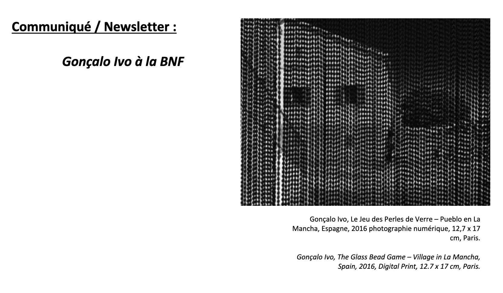 Gonçalo Ivo into the collections of the Bibliothèque Nationale de France. Gonçalo Ivo has donated 13 photographic prints to the collections of